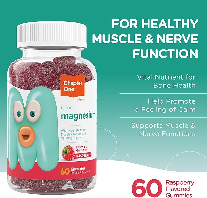 Chapter One Magnesium Gummies, Great Tasting Magnesium for Kids, Calm Kids Magnesium, Magnesium Gummies for Women and Men, Certified Kosher, (60 Flavored Gummies)