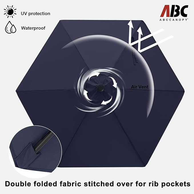 - Note:The umbrella base is not included in this item, please purchase separately if you need it or you can buy the ABCCANOPY umbrella base (ASIN: B07YKR1NFT) to match it. To avoid damage in extreme weather conditions, please close the outdoor tilt umbrella. In addition, one year after-sale protection for frame, six months after-sale protection for fabrics. If you have any question, don't hesitate, please contact us freely. We are here to make sure that you are satisfied.