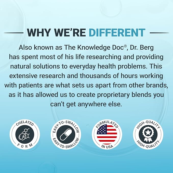 - ๐ช๐๐ฌ ๐ช๐โ๐ฅ๐ ๐๐๐๐๐๐ฅ๐๐ก๐ง - Also known as The Knowledge Doc, Dr. Berg has spent most of his life researching and providing natural solutions to everyday health problems. This extensive research and thousands of hours working with patients are what sets us apart from other brands, as it has allowed us to create proprietary blends you canโt get anywhere else.