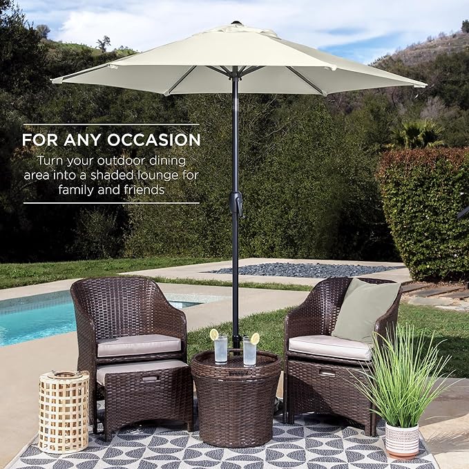 Best Choice Products 7.5ft Heavy-Duty Round Outdoor Market Table Patio Umbrella w/Steel Pole, Push Button Tilt, Easy Crank Lift - Ivory