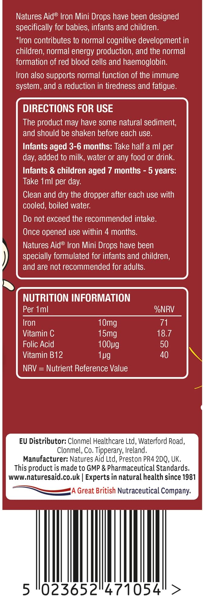- Iron: Provides iron for healthy development and growth