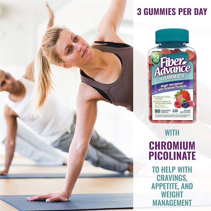 Fiber Advance Weight Management Gummies | 100% Plant Based Fiber for Digestive Wellness and Gut Health | Chromium Picolinate for Weight Management Support, 90 Count