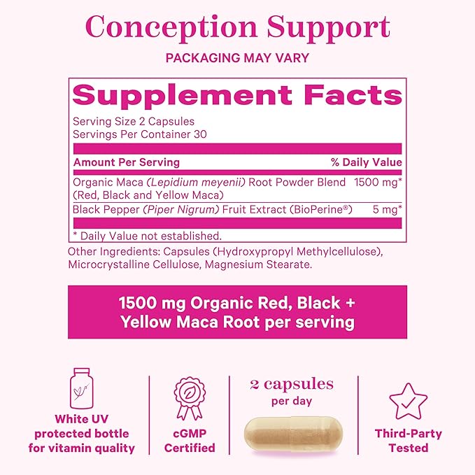 - Fertility Support: As a holistic superfood, Maca Root has been used for centuries for reproductive health and fertility support. We use the highest quality Maca Root blend to support follicle and egg health, aiding in conception for her.