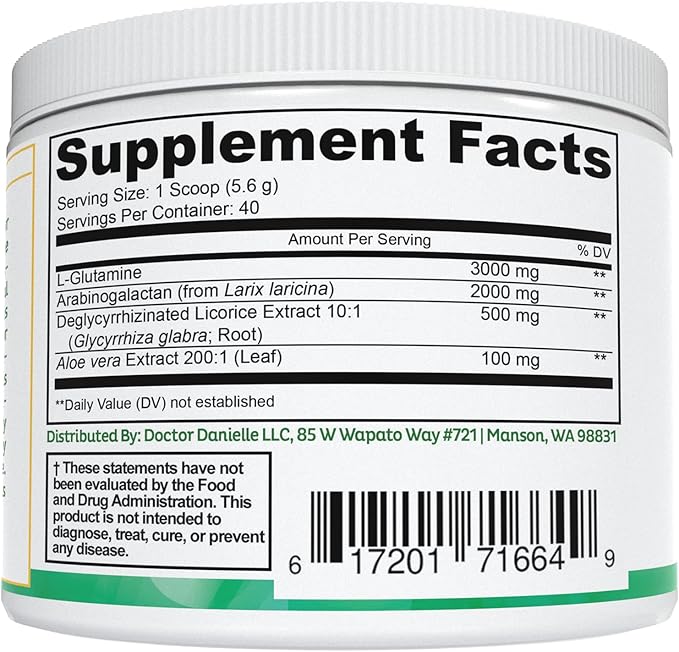 Doctor Danielle Gut Assist - Leaky Gut Repair Supplement Powder - Glutamine, Arabinogalactan, Licorice Root - Supports IBS, Heartburn, Bloating, Gas, Constipation, SIBO from
