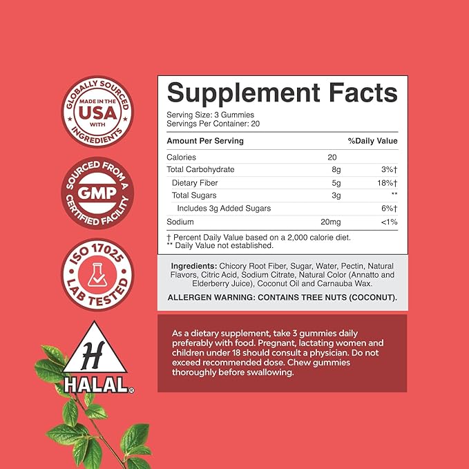 - Gummy Fiber for Adults - You deserve the best so our daily fiber gummy with halal vitamins like vitamin B6 for constipation are formulated in the USA in advanced cGMP facilities for quality assurance