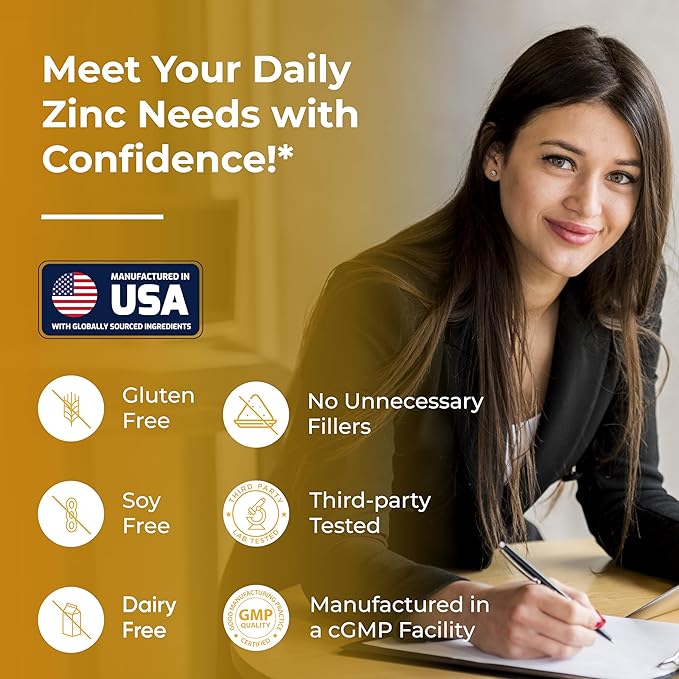 - QUALITY ENSURED ZINC CAPSULES: Our easy-to-swallow Zinc chelate 50mg capsules are tested by third-party laboratories to ensure purity and potency. Our 50mg zinc mono methionine is gluten free, soy free and dairy free.