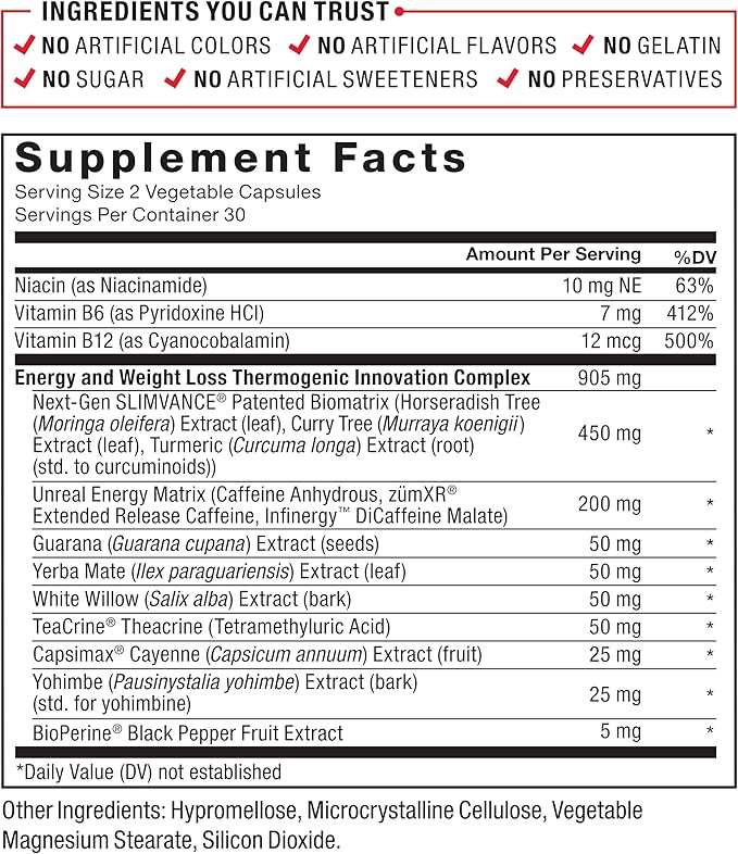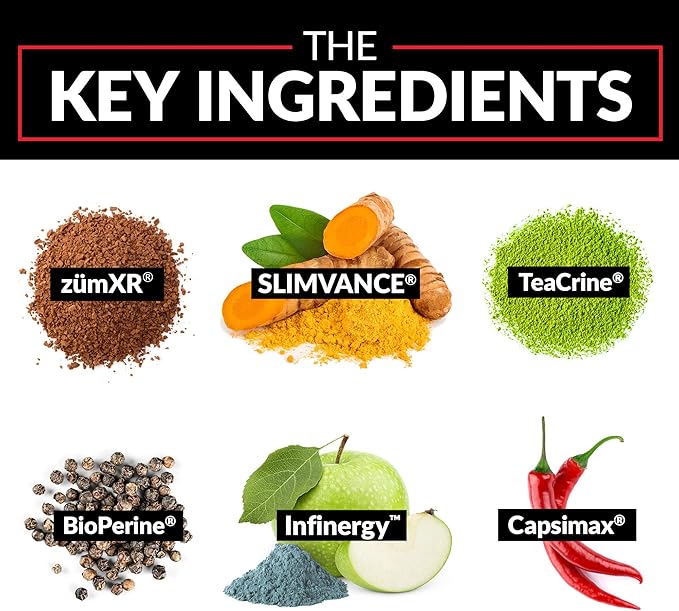 - EXTENDED ENERGY FOR FIERY FAT BURNING: Boosting energy directly helps you fight fatigue and maintain focus, while promoting thermogenesis. Premium branded ingredients like Infinergy, zümXR, TeaCrine theacrine, and Capsimax help to elevate energy levels throughout the day, ignite thermogenesis, suppress appetite, and improve focus and mood.