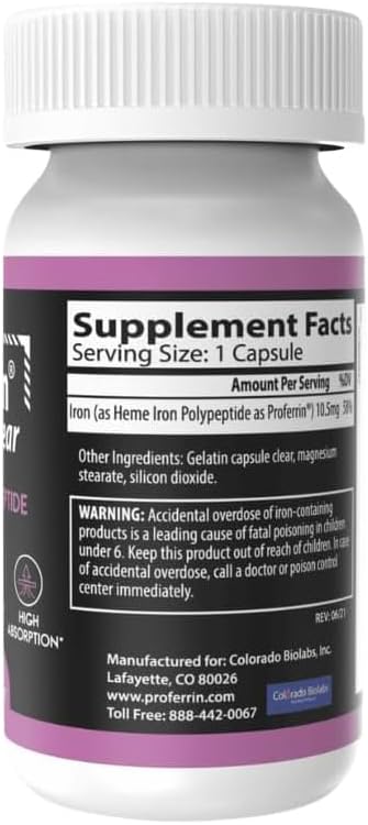 Proferrin Clear 30ct | US Made heme Iron for high Absorption, Easy on GI Tract | Natural, NSF Certified, dye Free