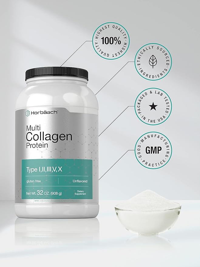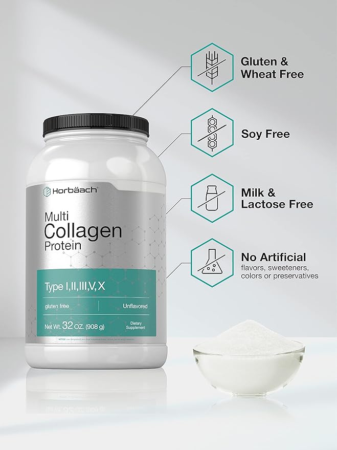 Horbaach Multi Collagen Protein Powder 32 oz | Type I, II, III, V, X | Hydrolyzed Collagen Peptides | Keto & Paleo Friendly | Unflavored & Gluten Free