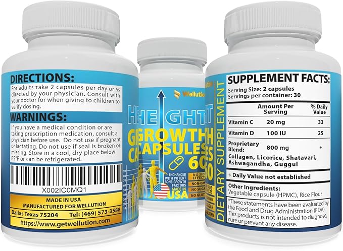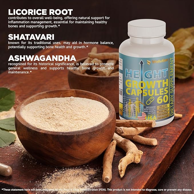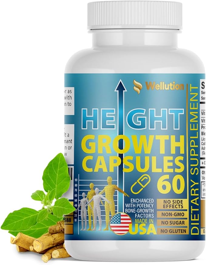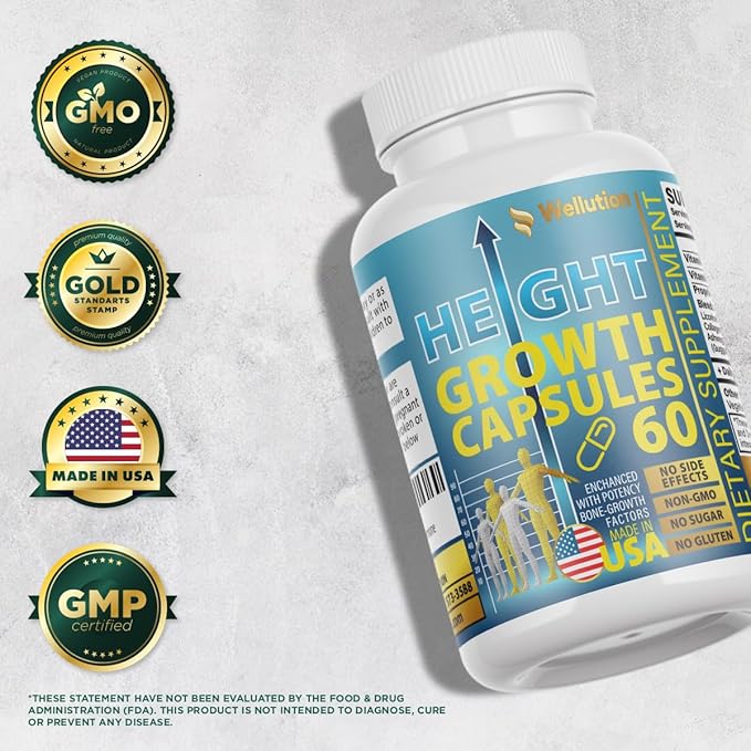 WELLUTION Height Growth Maximizer – Natural Supplement for Bone Strength & Support – Made in USA – Calcium-Enriched Pills