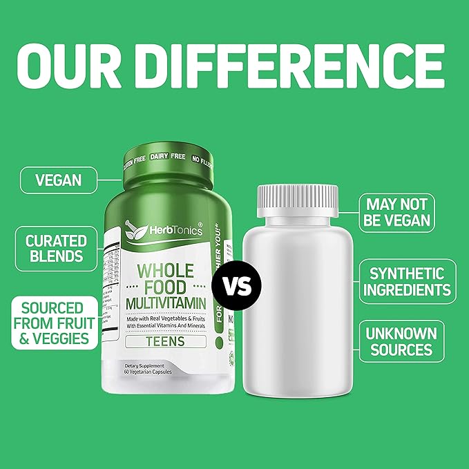 - Dietary Friendly: Herbtonics multivitamins for teens formula is vegan, gluten-free, non-GMO, and dairy-free. It is free from artificial colors, sweeteners, preservatives, and unnecessary binders, making it suitable for various dietary preferences and sensitivities.