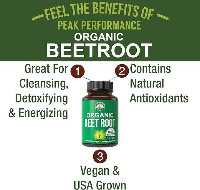 - Don’t Be Fooled By Cheap Beet Root - Not all beetroot vitamin capsules are created equal! Many supplements are derived from cheap, non-organic beetroots. Peak Performance red beets capsules are from USDA Organic, pure, alkalizing, nutrient-rich wholesome beet root. Get the highest quality premium Beet Superfood Capsules to energize and revitalize!
