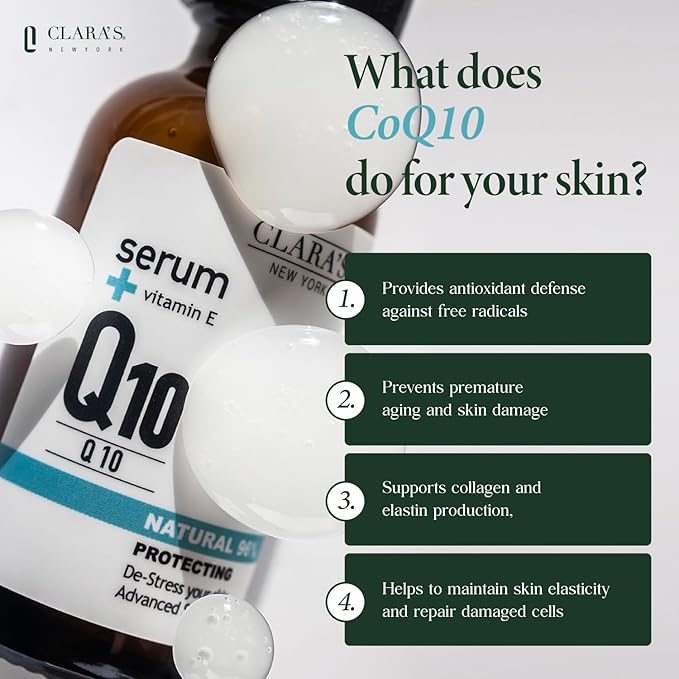 Clara's NEW YORK | Q10 Antioxidant Serum | with Hydrolyzed Collagen, Ceramide NP, Vitmain E | Anti-aging Protecting Repairing Skin Barrier Pore Minimizer Balancing Sebum | 30ml 1Fl oz | Made In USA
