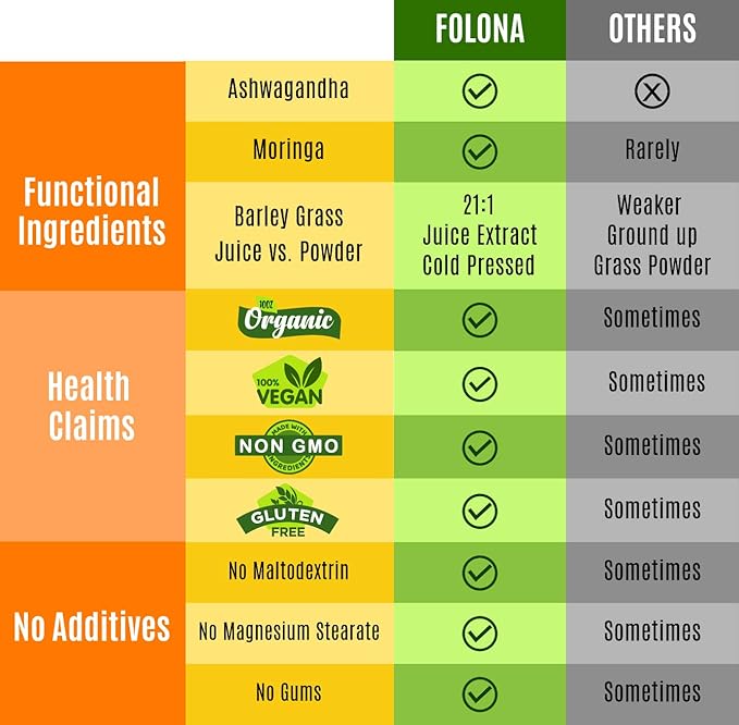 - ANTIOXIDANT & IMMUNE SYSTEM SUPPORT - Packed with essential antioxidants, vitamins and minerals from fruits & vegetables such as Turmeric, Ginger, Tomato, Garlic, Black Pepper, Vitamin C, Folona Supergreen Formula is designed to help fight off free radicals that can damage cells and impact immune health.