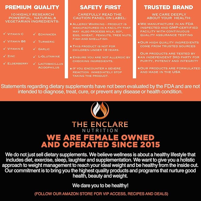 THE ENCLARE NUTRITION 10 in 1 Immune Support Booster Supplement with Echinacea, Vitamin C and Zinc, Turmeric, Ginger, B6, Elderberry for Adults Immunity Defense Vitamins, Made in USA Veg Cap 60 Ct (1)