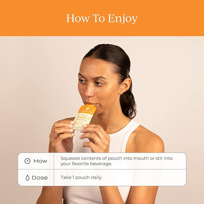 - HOW TO ENJOY: Enjoy our refreshing citrus vanilla flavored vitamin C straight from the pouch directly into your mouth, or mix into water, juice, yogurt, or your favorite smoothie. Take 1 vitamin c packet daily, and for enhanced immunity take with Cymbiotika’s D3+ K2 + CoQ10. Store in a cool, dry place or refrigerate after opening. Do not freeze. Includes 30 packets per container.