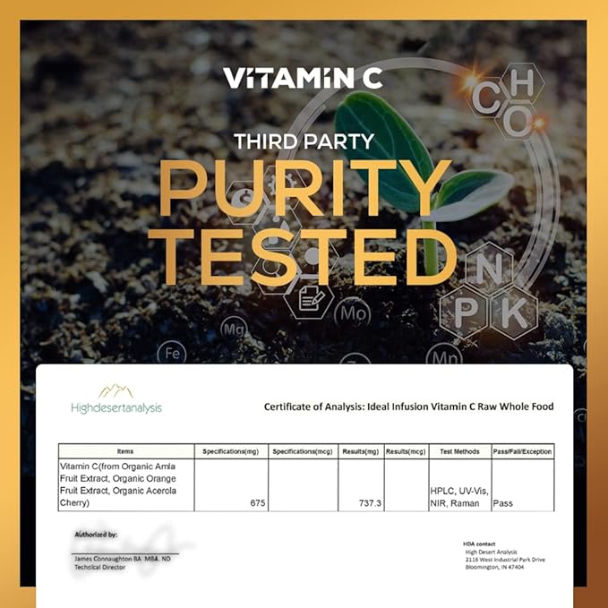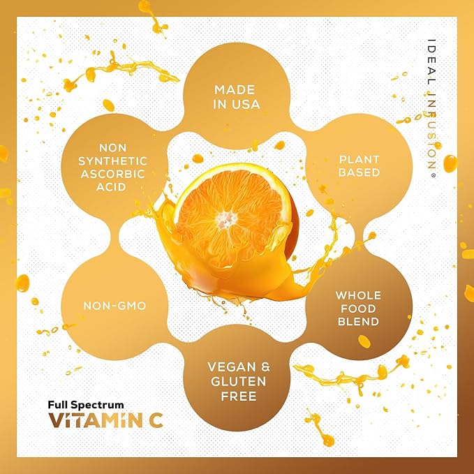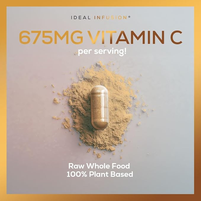 Ideal Infusion Raw Whole Food Vitamin C Complex: Natural Vitamin C Extracted from Organic Oranges and Acerola Cherries with Food Based Bioflavanoids (60 Servings) No Synthetic Ascorbic Acid
