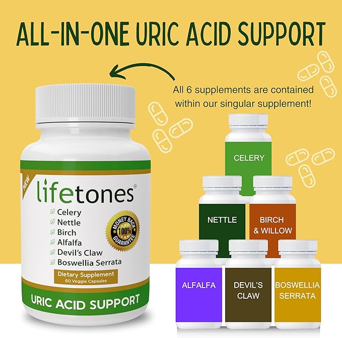 - URIC ACID RELIEF - Lifetones metabolizes uric acid levels by removing the uric acid that settles and crystallizes in your joints. This liquid formula promotes healthy joints and helps relieve muscle stiffness for optimal health & wellness.