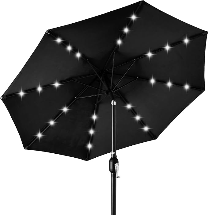 Best Choice Products 10ft Solar Polyester LED Lighted Patio Umbrella w/Tilt Adjustment and UV-Resistant Fabric - Black