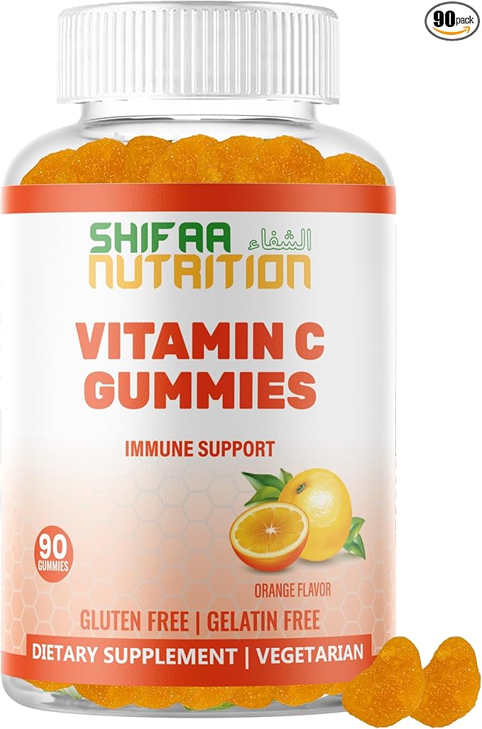 - IMMUNE SUPPORT: SHIFAA NUTRITION Natural Vitamin C Supplement for Adults and Kids are made of premium quality ingredients to support the Immune system. Where our Chewable Vitamin C for Kids & Adults gummies Promote Body's Natural Defense Mechanism, they are also helpful for seasonal support like runny nose, sneezing, sniffles, cold, cough & congestion.