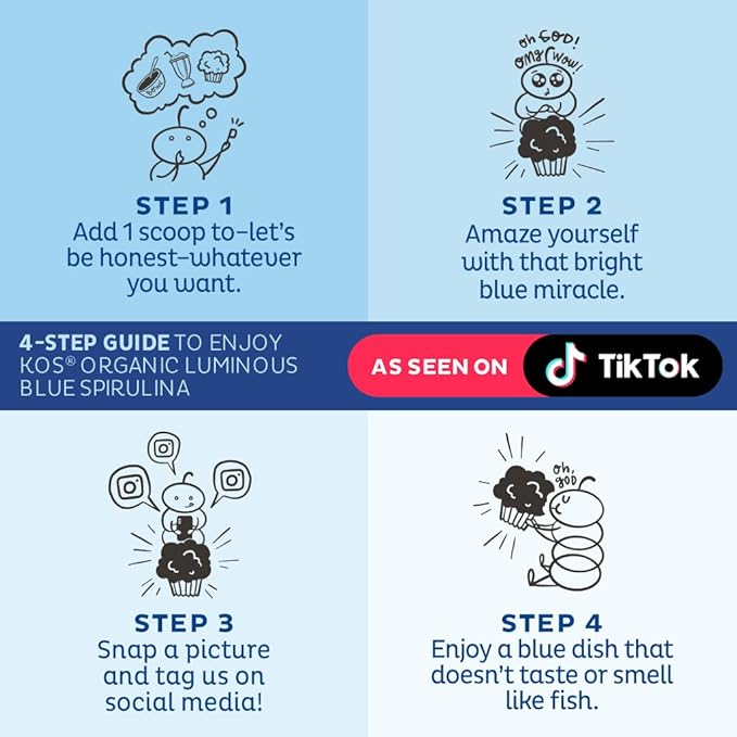 - Bolt from the blue: We started with Blue Spirulina and hand selected the rest to energize your day- Cordyceps, Lion's Mane, Rhodiola, Ashwaganda, Ginsing, and green coffee extract. Add 1 scoop to cold water or juice and froth for a vivid blue lift.
