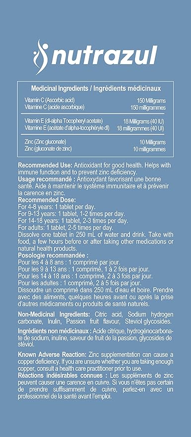 - Enhanced Defense – Combining 150mg vitamin C, 18mg vitamin E, and 10mg zinc, these effervescent tablets naturally strengthen the immune system, making them an ideal immune supplement.