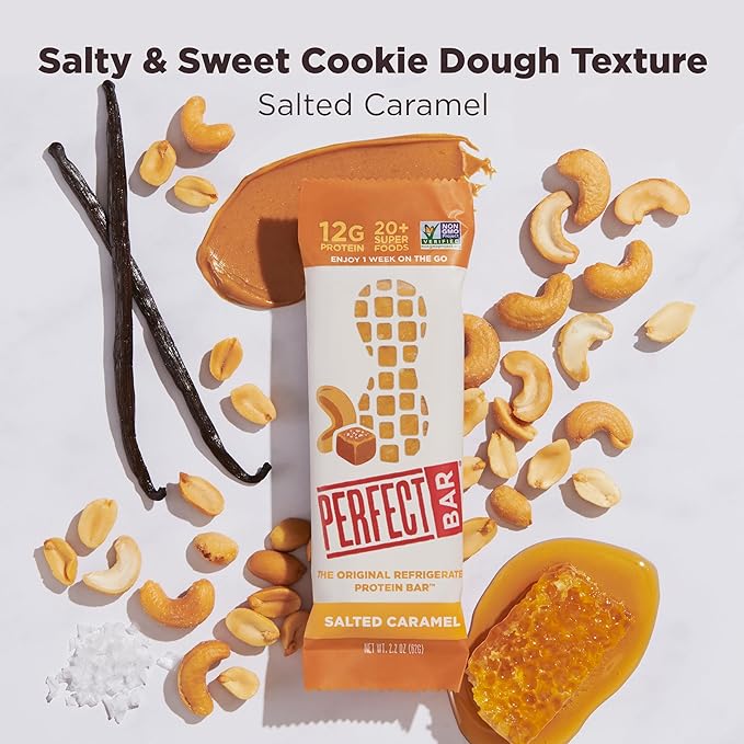Perfect Bar Original Refrigerated Protein Bar, Salted Caramel, 2.2 Ounce Bars, 8 Count (Pack of 3)