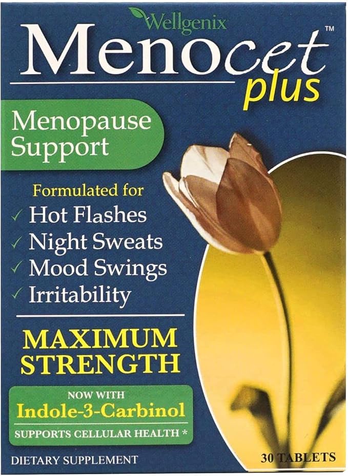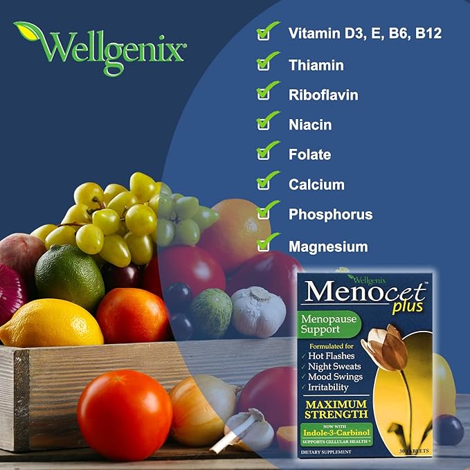 Wellgenix Menocet Plus Menopause Support - Natural Supplement for Women - Daily Relief Feminine Care - Helps with Hot Flashes, Night Sweats, Mood Swings & Irritability - 30 Tablets