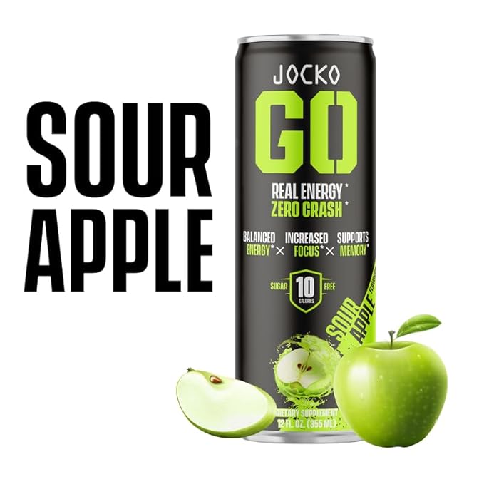 Jocko GO Energy Drink - KETO, Vitamin B12, Vitamin B6, Electrolytes, L Theanine, Magnesium- Energy Boost, Sugar Free Nootropic Monk Fruit Blend - 12 Pack (Sour Apple)
