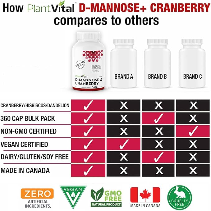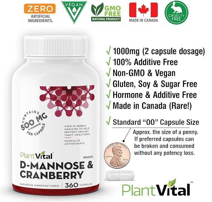 - PLANTVITAL TRUST: Quality-assured DMannose pills with cranberry extract. US-made for superior urinary and bladder health. A family-owned business committed to your satisfaction. Get a full refund if you are not 100% satisfied.