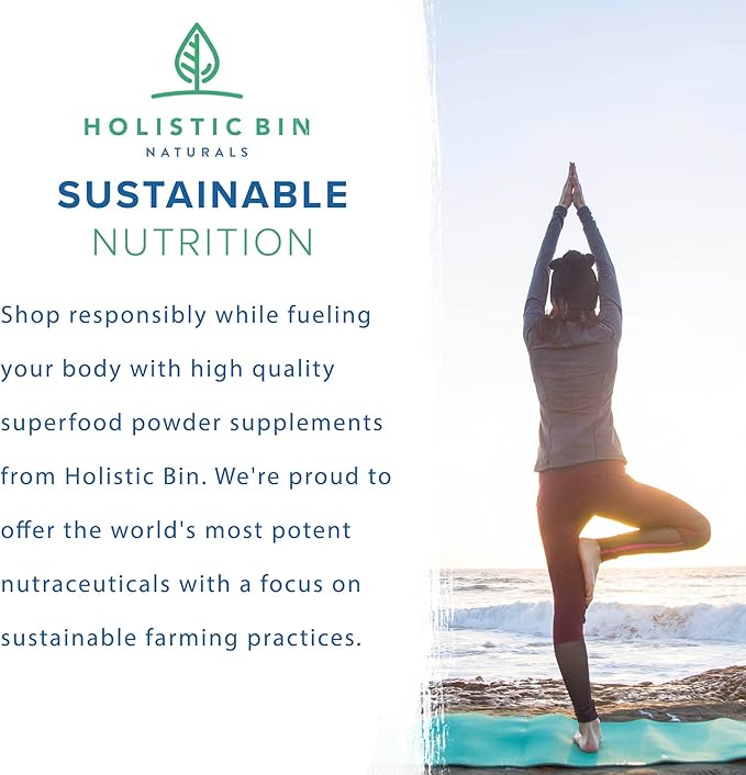 • SUSTAINABLE NUTRITION: Shop responsibly while fueling your body with high quality superfood powder supplements from Holistic Bin. We're proud to offer the world's most potent nutraceuticals with a focus on sustainable farming practices.