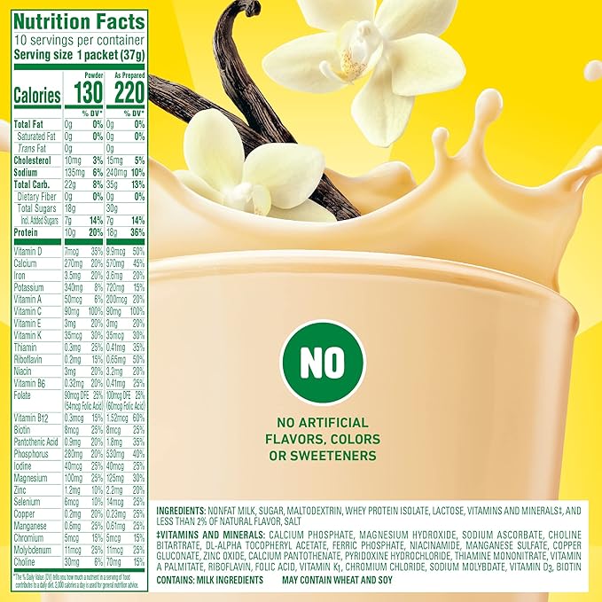 - High Protein Nutritional Drink: Snack or breakfast, drink with skim milk or add to smoothies, our High Protein Powdered Drink Mix provides 18g of protein when mixed with 1 cup of fat-free milk