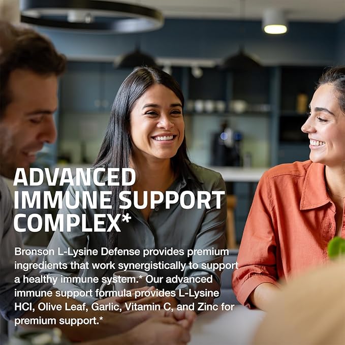 Bronson L-Lysine Defense Immune Support Complex 1500 MG L-Lysine Plus Olive Leaf, Garlic, Vitamin C and Zinc - Non-GMO, 250 Vegetarian Capsules