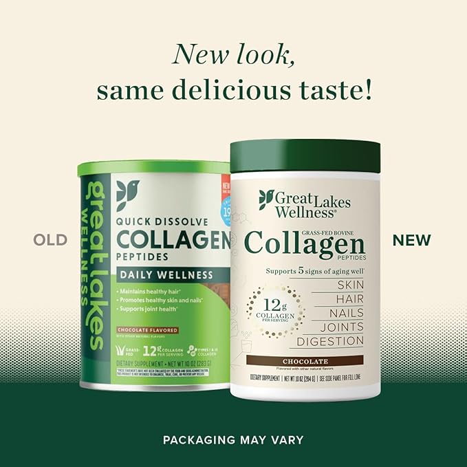 Great Lakes Wellness Collagen Peptides Powder for Skin, Hair, Nails, Joints & Digestion - Chocolate Flavored - Quick Dissolve Hydrolyzed, Non-GMO, Kosher - 10 oz - Packaging May Vary
