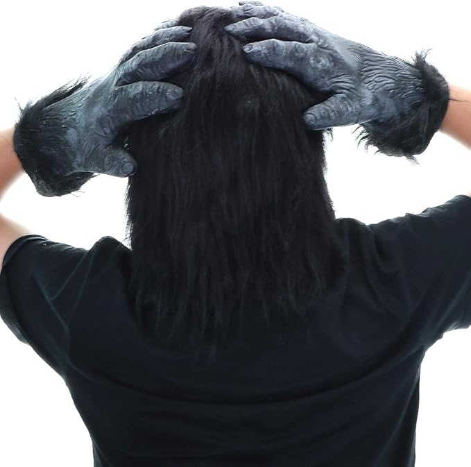 Latex Animal Gorilla Mask with Gloves - Gorilla Head Mask Set for Halloween Costume Black