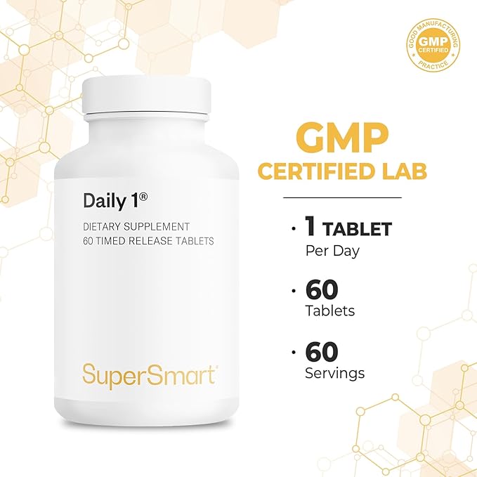 Supersmart - Daily 1® Timed Release - Multivitamin Supplement for Women & Men - with BioPQQ®, Vitamin A, B, C, D & E, Biotin, Quercetin & Fisetin | Made in USA | Non-GMO & Gluten Free - 60 Tablets
