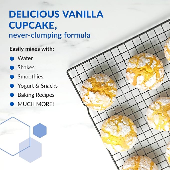 - DELICIOUS VANILLA CUPCAKE, NO SUGAR. Our healthy low-carb protein powder is non-GMO, with no sugar, hormones, artificial sweeteners or colors.