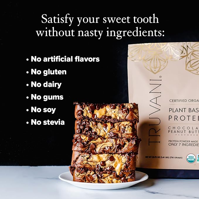 - Clean Formula, Free of Additives & Fillers: Experience pure nutrition with Truvani plant-based protein powder, free from artificial sweeteners, useless additives, and weird fillers. Our formula excludes soy, wheat, dairy, gluten, and stevia, ensuring a clean and wholesome blend. Enjoy the sweetness of organic monk fruit without added sugars.