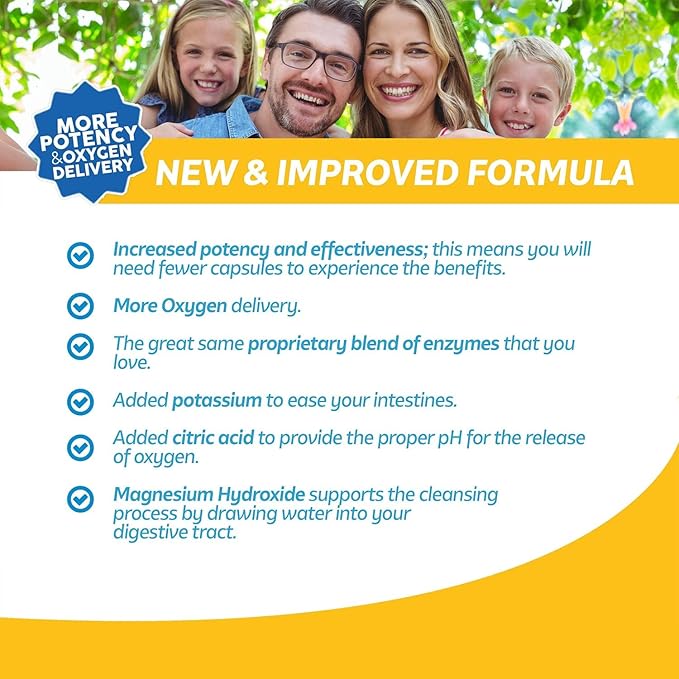 - PREMIUM HERBS, MINERALS, AND CITRIC ACID BLEND: Includes a blend of premium proprietary herbs, minerals, and citric acid. Dandelion Root supports the liver and kidneys, Blue-green Algae and Bentonite Clay help neutralize and remove toxins, and Magnesium Hydroxide supports the cleansing process by drawing water into your digestive tract. Citric Acid provides the proper pH for the release of oxygen, and Potassium eases the intestines.