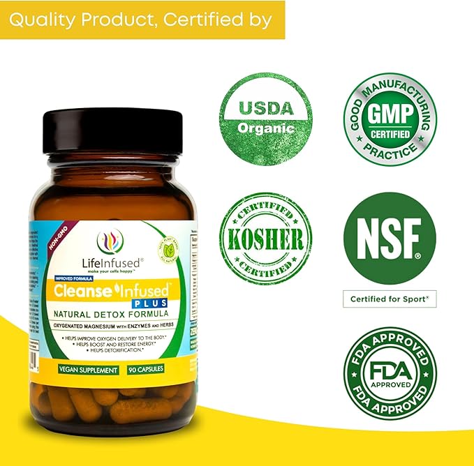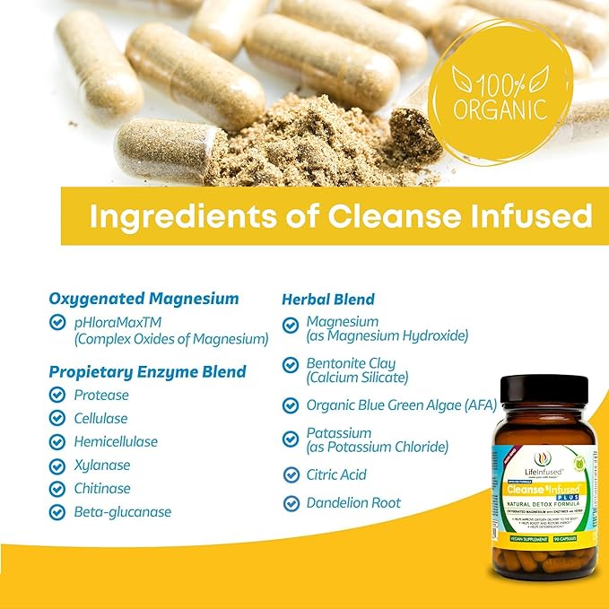 Life Infused Cleanse Infused Plus - Premium Natural Colon Cleanser with Oxygenated Magnesium, Herbs, and Enzymes, Helps Relieve Constipation Gently, Detoxifies Blood, Colon, Liver & Kidneys (90 Caps)