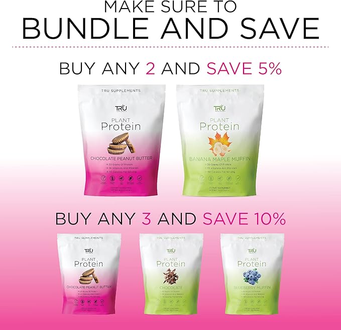 TRU Plant Based Protein Powder, BCAA, EAA, 20g Vegan Protein, 100 Calories, 27 Vitamins, No Artificial Flavors 25 Servings (Chocolate Peanut Butter)