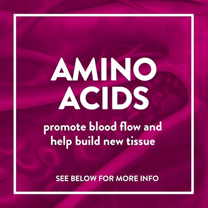 - AMINO ACIDS: Contains arginine to promote nutrient-rich blood flow, and glutamine to help the body build new tissue