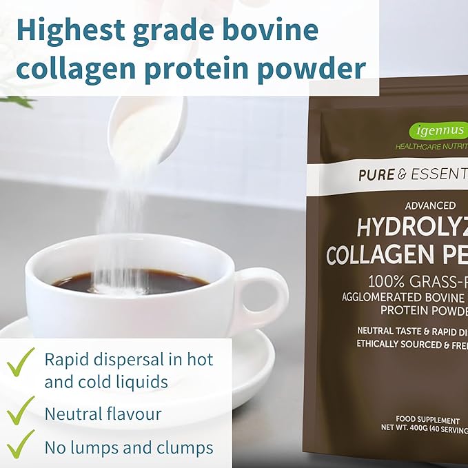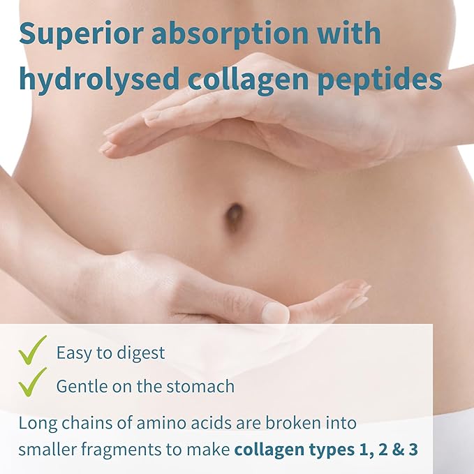 - SUPERIOR ABSORPTION: enzymatically hydrolyzed collagen powder peptides - offers superior bioavailability and is easier to digest. Hydrolysed Collagen peptide proteins can be used by the body to make collagen types 1, 2 & 3 as required