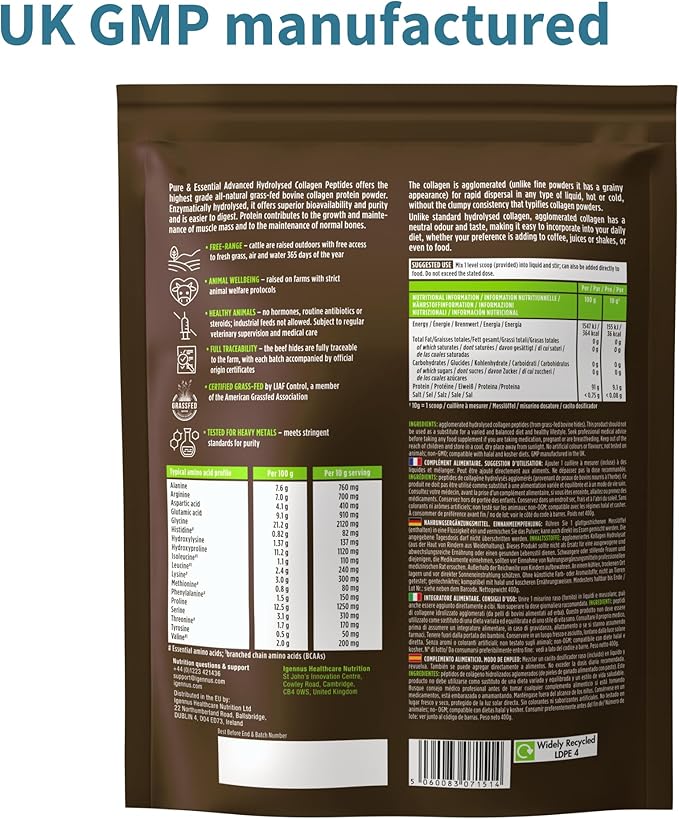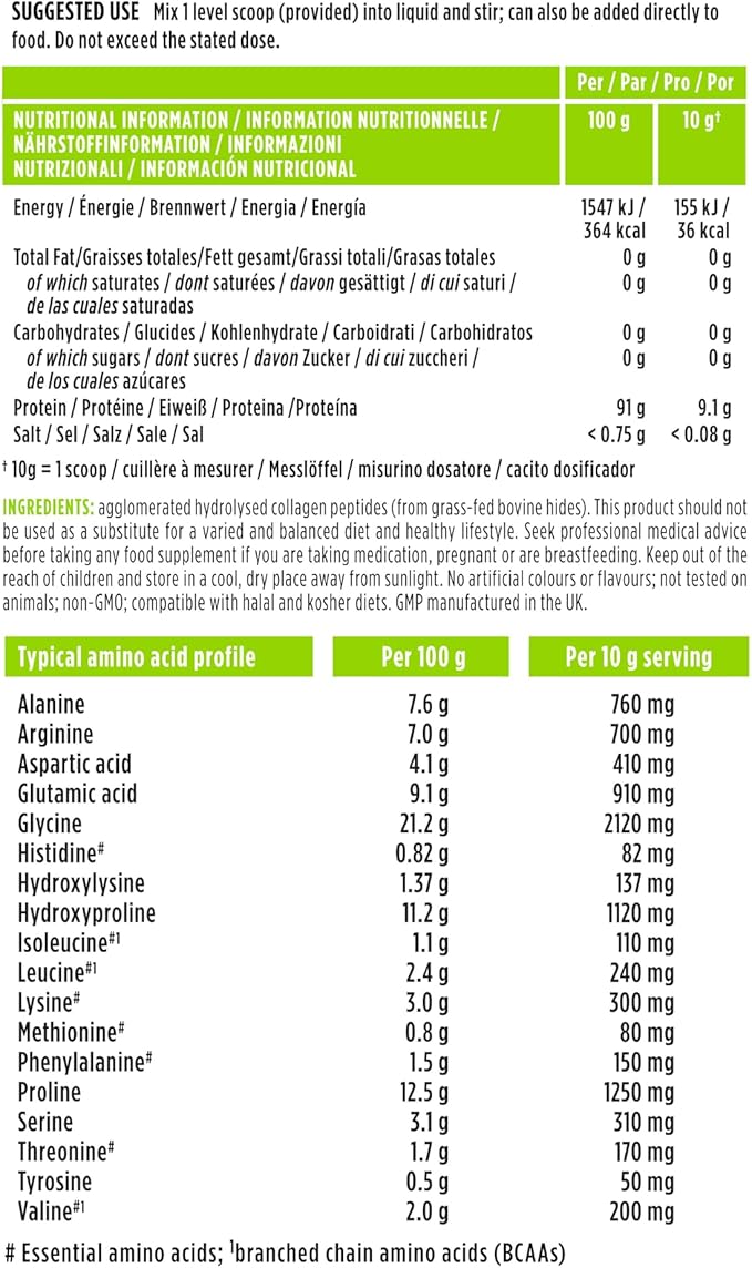 - EASY MIX & IMPROVED TASTE: agglomerated collagen is an advanced form of collagen hydrolysate with no odour or taste, dispersing instantly in hot & cold drinks with minimal stirring required