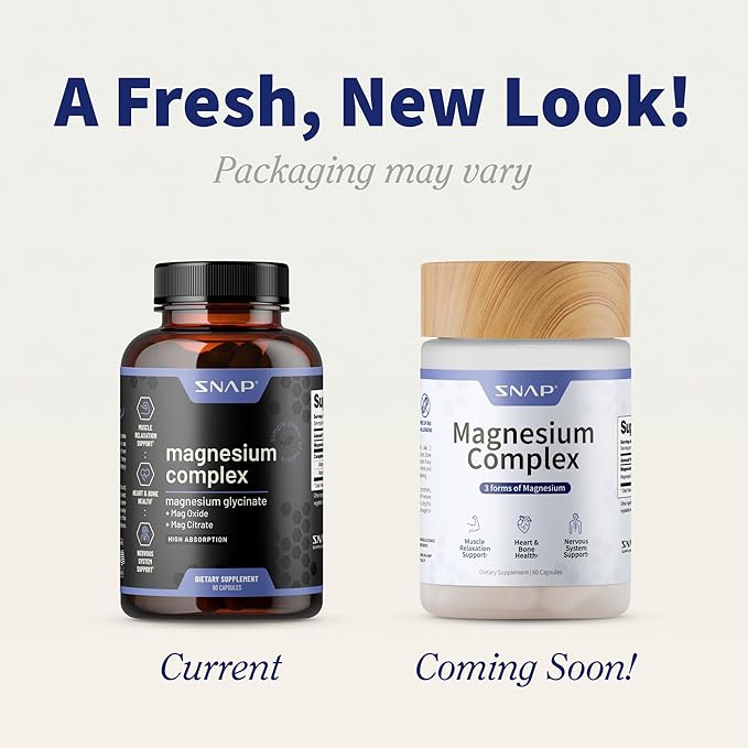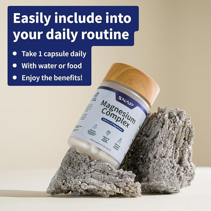 Snap Supplements 3-in-1 Magnesium Complex Supplement, Magnesium Bisglycinate, Oxide, Citrate, Triple Magnesium Complex, 60 Capsules