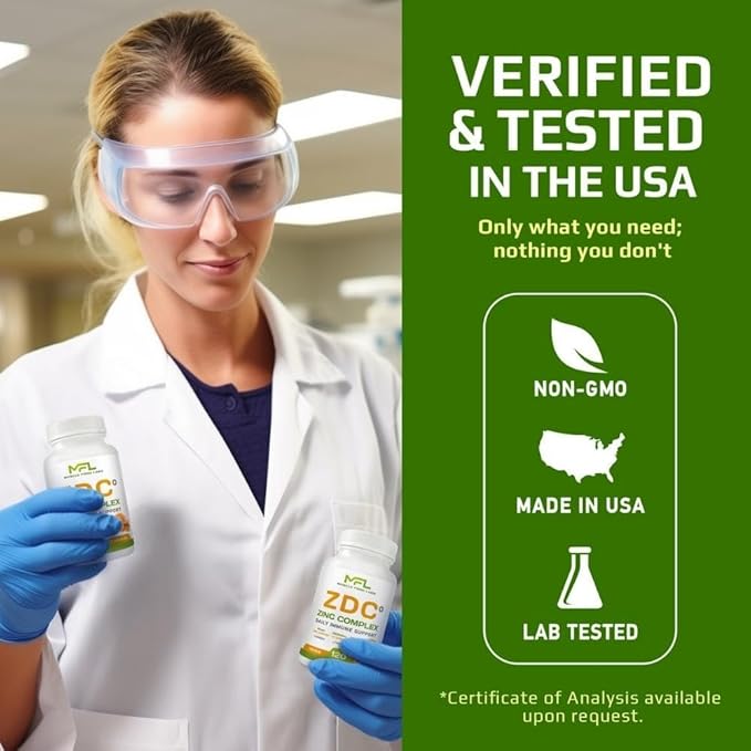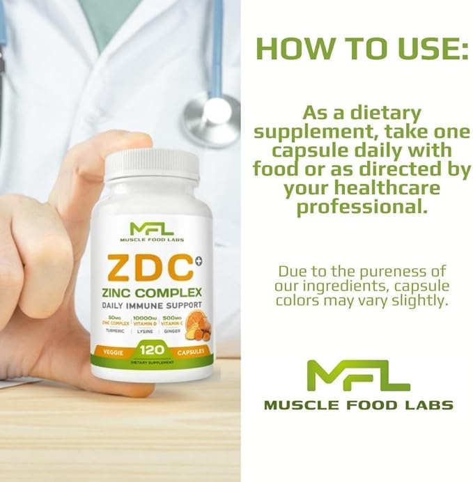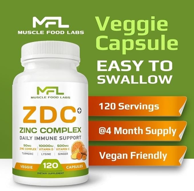 | Z D C Plus | Vitamin C, 500mg | Vitamin D3, | Zinc, | Turmeric | Ginger | Lysine | Non-GMO & Gluten Free | Veggie Caps | 120 Servings
