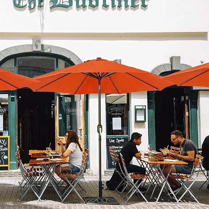 - MODERN & WIDELY APPLICABLE -- Blissun 9 feet patio umbrella with elegant design, is a perfect and essential for summer or sunny days to shade sunshine, apply to the yard, beach, square, garden and patio shops like cafe, restaurant, swimming pool.