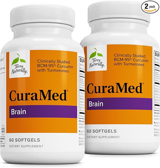Terry Naturally CuraMed Brain - 60 Softgels, Pack of 2 - with BCM-95 Curcumin, Vitamin D3, Rosemary & Sage - Non-GMO, Gluten Free - 60 Total Servings