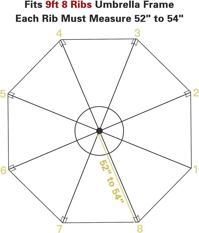 - Fits 9ft 8 ribs umbrella frame. Each rib must measure 52" to 54", please measure your umbrella rib length before purchase. (Please note that this product does not contain umbrella frame)