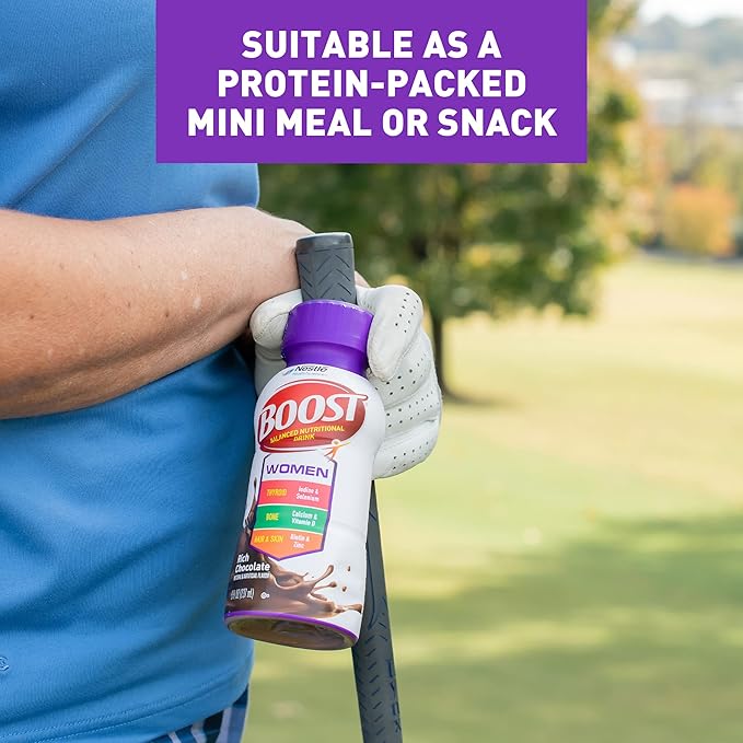 - Tailored Nutrition: BOOST Women contains iodine and selenium to help support normal thyroid function, calcium and vitamin D to support strong bones and biotin and zinc to support skin and hair health